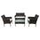 CORFOU tuinset in zwart gevlochten kunststof 4 zitplaatsen - grijze kussens