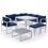 IBIZA modulaire tuinset in blauwe stof, 7 zitplaatsen - wit aluminium